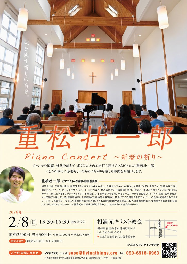 チケットのご予約は以下重松壮一郎さんのHPリンクから予約または教会HPのお問い合わせからも承っております。
